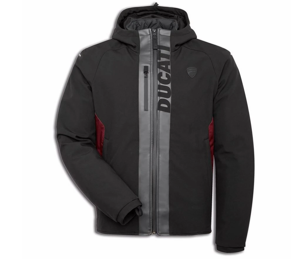 Deze Ducati motorjas biedt optimaal comfort, dankzij de stretch- en ademende materialen waarmee hij volledig is vervaardigd. Bovendien is er een elastische coulisse aanwezig, die de wijdte van de jas regelt. De verstelbare kraagsluiting en de vaste capuchon met volumeregeling verhogen het comfort nog verder.