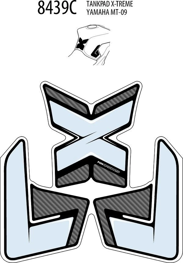 3-delige tankprotectieset van Puig voor de Yamaha MT-09 2013-. Met deze set beschermt u de tank van de motor aan de voor- en zijkanten tegen krassen en dof worden van de lak
