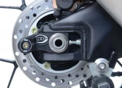 Wanneer er geen schroefdraad in de achterbrug is om een bobbin te monteren kan de R&G “Offset Cotton Reels” gebruikt worden. Zo kan er via de kettingspanner/achteras toch een bobbin op de motor gemonteerd worden en kan de motor dus met een paddockstand veilig en stevig gestald worden. Ook beschermen de bobbins de achterbrug bij een val.