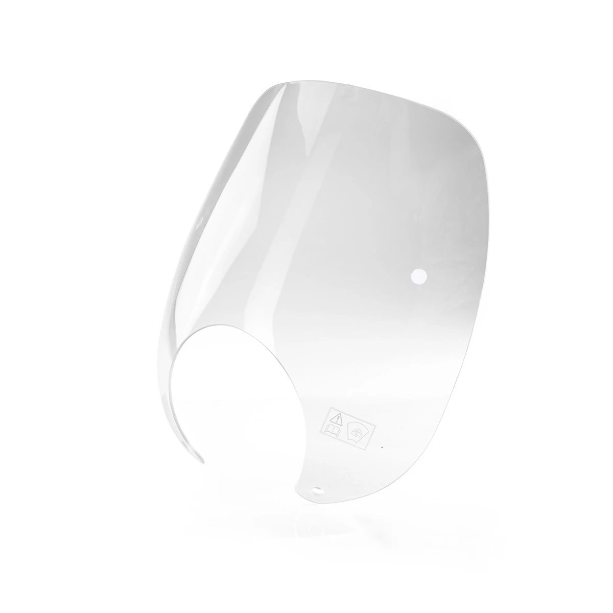 Een onmisbaar accessoire voor de langere reizen. Ruim bemeten windscherm uit polycarbonaat met krasbestendige Quantumcoating. Geleverd met gesmede en machinaal bewerkte vorkpootklemmen en alle benodigde roestvaststalen bevestigingsmiddelen. Hoogte (boven zitting): 525 mm  Breedte: 480 mm